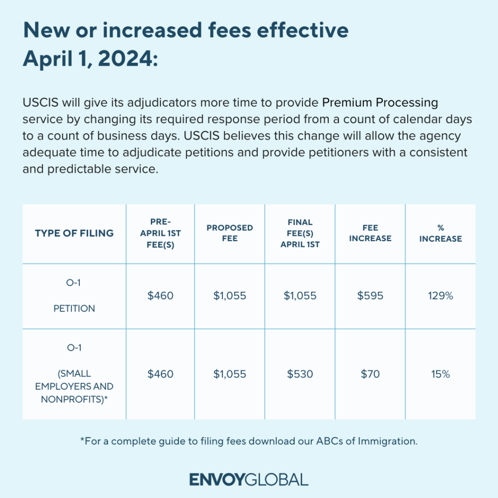 - Premium processing fees have increased from $2,500 to $2,805. USCIS will adjudicate the H-1B petition—meaning they will approve, issue a request for evidence or deny the petition—within 15 business days.
