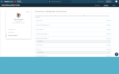3. Document upload: Employees upload critical case-related documents directly into the platform, ensuring security of sensitive and timely information and creating a document repository that keeps all sponsored employee documentation together in one place for easy access.