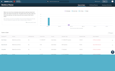 - Gain a comprehensive view into current and future immigration needs, including renewals, green card eligibility, upcoming H-1B cap cases and more
