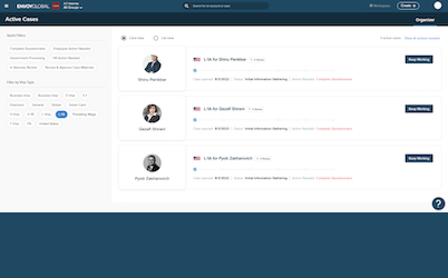 Improving immigration management starts with getting everyone on the same page. At Envoy Global, we simplify the immigration process by arming you and your legal team with powerful, intuitive technology that helps unify data, automate workflows, improve efficiencies and ensure everyone is aligned, no matter where they are in the world—or in the immigration process.