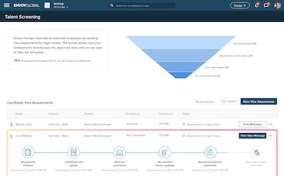The Global Deployment Dashboard visually organizes a company’s entire global workforce—anywhere in the assignment process—providing businesses the insight they need to optimize talent around the world.