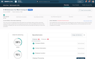 2. Case status tracking: Employees have total visibility into the status of their case (e.g. when LCA is filed). This visibility reduces questions and uncertainty by allowing them to easily monitor progress, upcoming actions and timelines in real time.